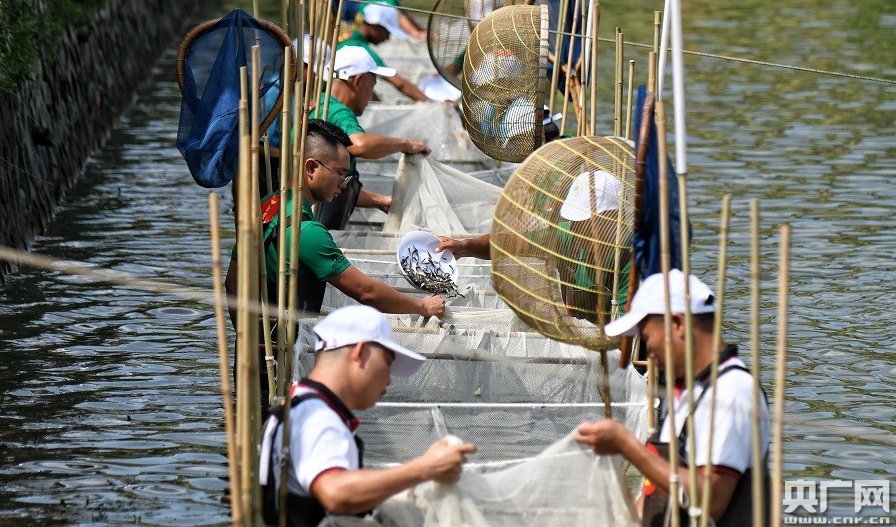 九江水產養殖師傅在表演傳統技藝開側及數魚花。(央廣網發 通訊員陳國杰供圖)