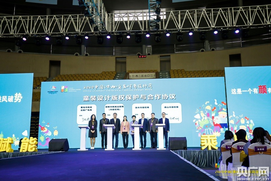 佛山、青島、邯鄲、泉州四地版權主管部門簽署童裝版權保護合作框架協議。(央廣網發 主辦方供圖)