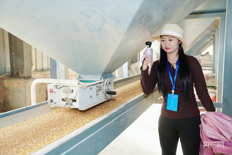 調(diào)研團(tuán)隊(duì)參觀基地飼料廠(央廣網(wǎng)記者 張順鵬 攝)