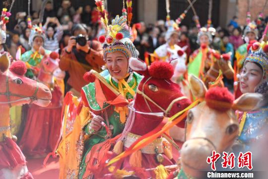 據(jù)中國(guó)新聞網(wǎng)報(bào)道,一群年約二十的姑娘手執(zhí)彩旗,頭戴桂冠,身著錦袍,腳踏布馬,靜立在潮州市牌坊街的石板路上。倏而音樂(lè)聲起,姑娘們聞聲而動(dòng),或搖旗、或揚(yáng)鞭,在旋轉(zhuǎn)、跳躍之間,一支充滿民俗氣息的獨(dú)特舞蹈就此上演。