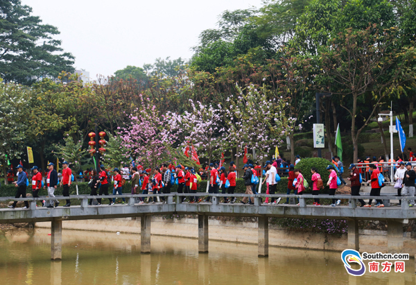 據南方網報道,3月18日,“友善東莞”首屆“黃飛虎”萬眾徒步迎春公益行3月18日在黃旗山公園至虎英公園舉行,東城籍殘奧冠軍周國華與5000群眾一起徒步做公益,徒步完成10公里環山綠道時間大約為2個小時。本次活動作為“2017東莞市戶外運動節”首場活動,報名及自發慕名前往參與,吸引了近5000人和40多家商會參與其中,共籌集善款逾4萬元及體育用品一批。