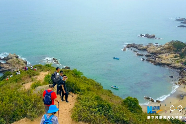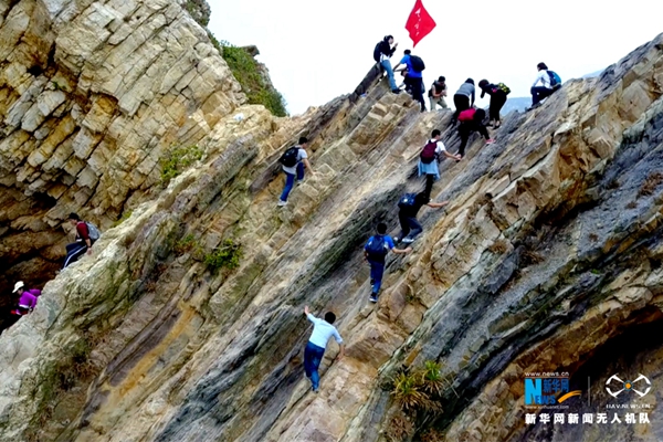 每逢周末及節(jié)假日,驢友們就會組團相約于這條實際行走路程約八公里的穿越線路上,此時此刻,東西涌海岸線則變成了驢友徒步的最佳圣地。新華網(wǎng)發(fā)(陳楷攝)
