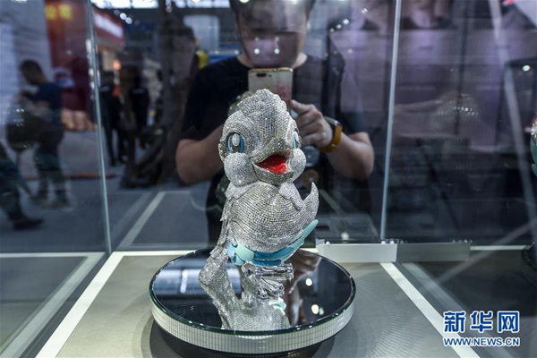 5月15日,觀眾在文博會現場拍攝鉆石擺件“鵬鵬”。當日,第十三屆中國(深圳)國際文化產業博覽交易會落下帷幕。據大會統計,本屆文博會成交2240.848億元,同比增長10.28%。其中,合同成交2064.348億元,零售及拍賣成交176.500億元。新華社記者 毛思倩 攝