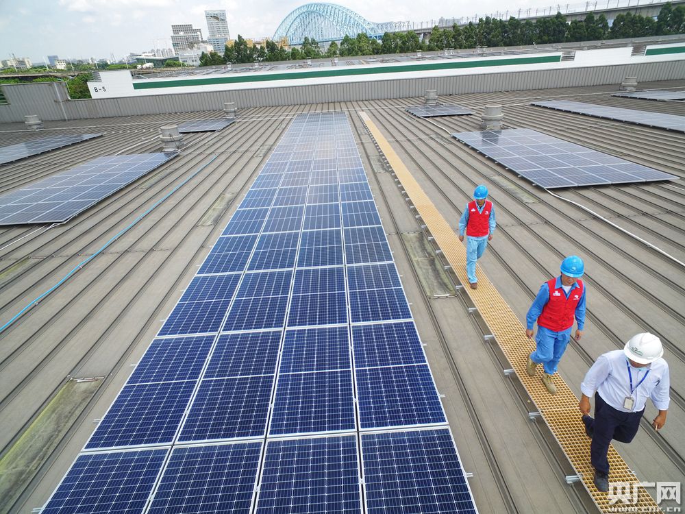 南方電網廣東佛山南海桂城供電所工作人員到普洛斯三山物流園檢查光伏裝置。(央廣網發 張宇暉 攝)