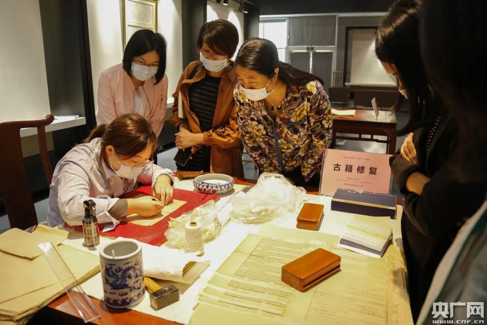 古籍修復演示受到了市民的關注。(央廣網發 通訊員供圖)