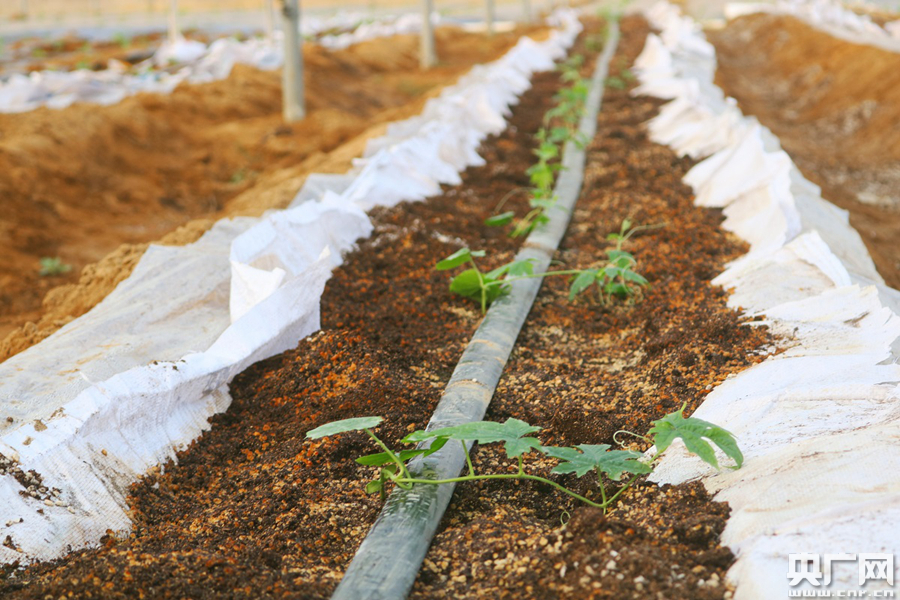 勝利大棚內采用無土栽培技術種植的苦瓜(央廣網記者 夏燕 攝)