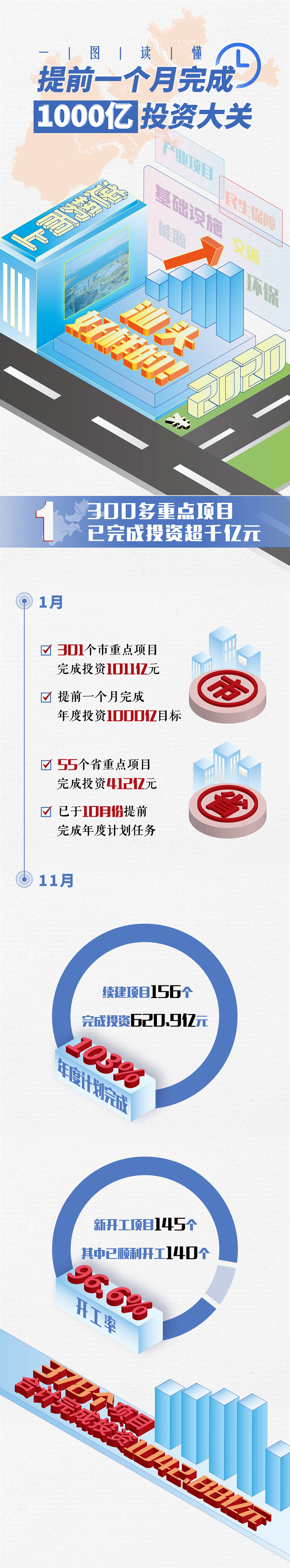 截至2020年11月底,汕頭市已提前一個月攻克了全市全年千億投資大關,創造出了令人矚目的“汕頭答卷”。下面通過一組長圖,一起回顧汕頭全年的“成績單”吧!