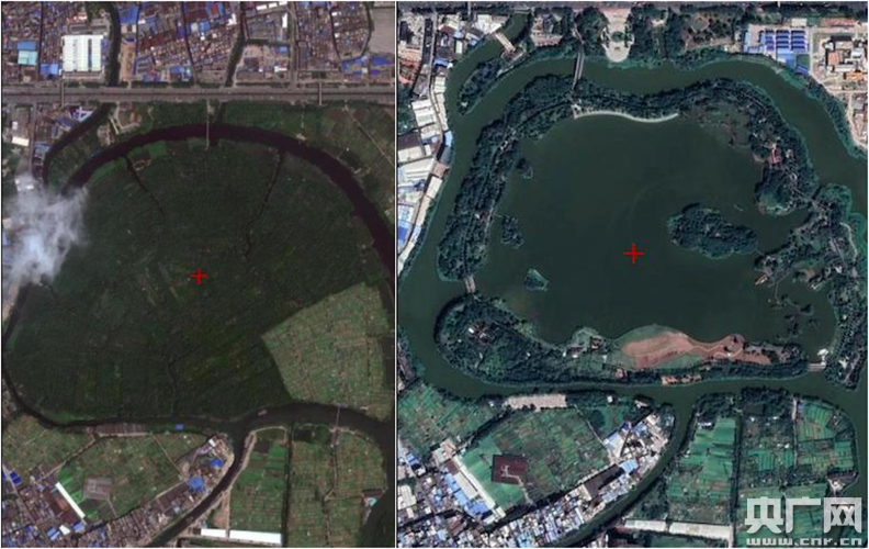 2009年(左)與2018年(右)海珠湖衛(wèi)星圖對(duì)比(央廣網(wǎng)發(fā) 資料圖)