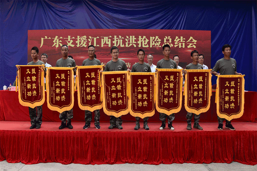 8月31日上午,在廣東支援江西抗洪搶險表彰總結會上,廣東省三防辦、廣東省應急管理廳對廣州水投集團廣州排水公司搶險隊授予“援贛抗洪 又立新功”錦旗,對何東權、陸偉良、梁斌、胡福銳、劉澤明、周家倫、袁文杰7名同志頒發了“江西抗洪搶險先進個人”榮譽證書。