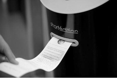 每一臺短篇小說售貨機(jī)上都擁有“一分鐘”“三分鐘”“五分鐘”三個按鍵,人們通過按下不同的按鍵可以獲得不同長度的短篇小說,而打印出來的短篇小說則像我們平常購物時的購物小票。