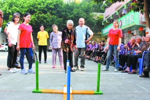 老人在參加院內(nèi)舉行的運動會。