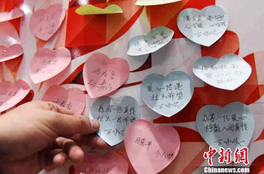蘭州本地5家牛肉面連鎖品牌加入“墻上有愛(ài),人人公益”愛(ài)心牛肉面活動(dòng)。用餐的人提前購(gòu)買(mǎi)牛肉面,將購(gòu)得的小票貼在墻上并寫(xiě)上祝福語(yǔ),任何一位需要就餐卻遇到困難的食客,都可以將墻上的小票撕下來(lái)交到收銀臺(tái),免費(fèi)享用牛肉面。圖為活動(dòng)園地。 楊艷敏 攝