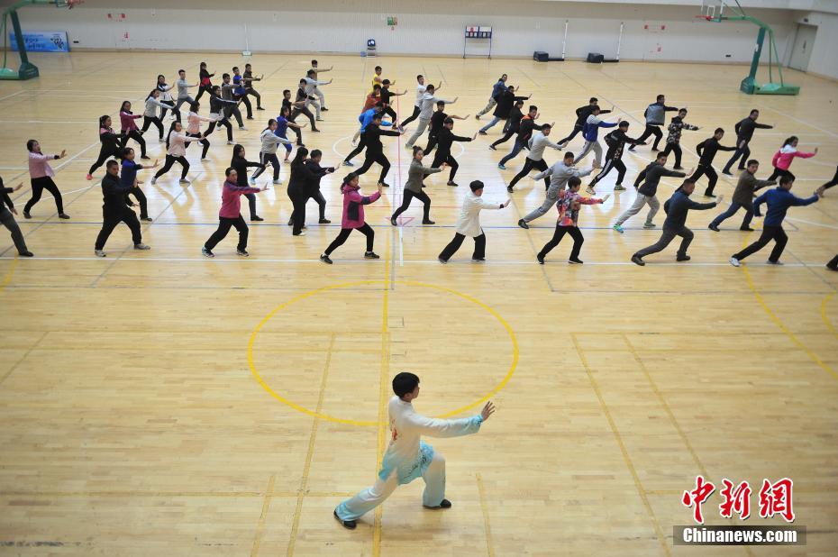 •   3月7日,昆明,老師帶領學員練習太極拳。當日,太極公益課在云南民族大學開班,由該校國際太極學院的專業教師免費授課。校方表示,舉辦太極拳公益課活動,旨在讓更多人了解中國的太極文化,建立積極向上的健康人生觀。 中新社記者 劉冉陽 攝