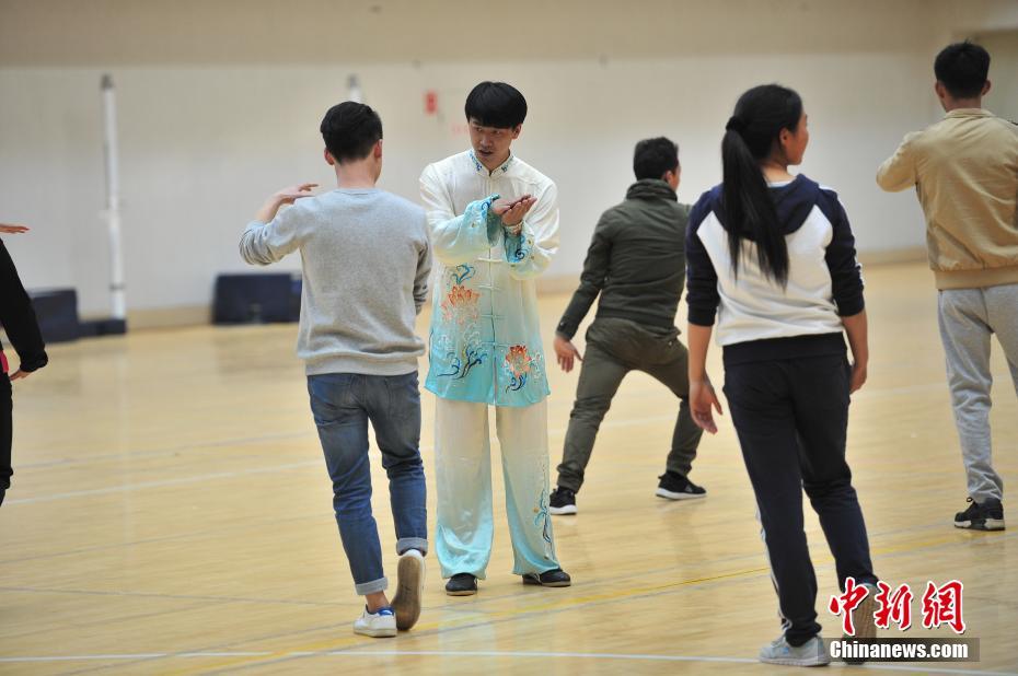 •   老師指導學員動作要領。 中新社記者 劉冉陽 攝   云南高校太極公益課開班 弘揚太極文化