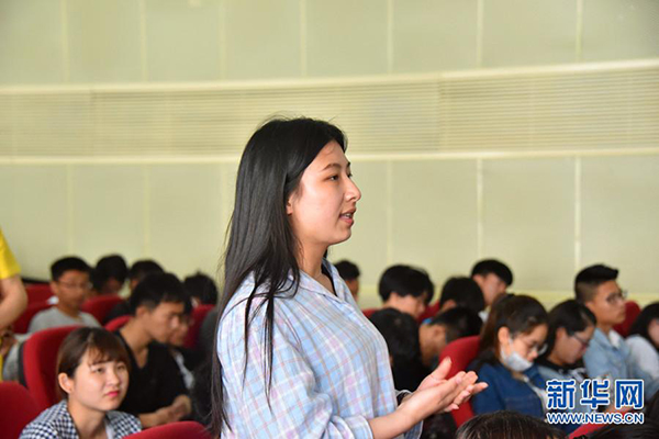圖為當地大學生就自己關心的問題進行提問