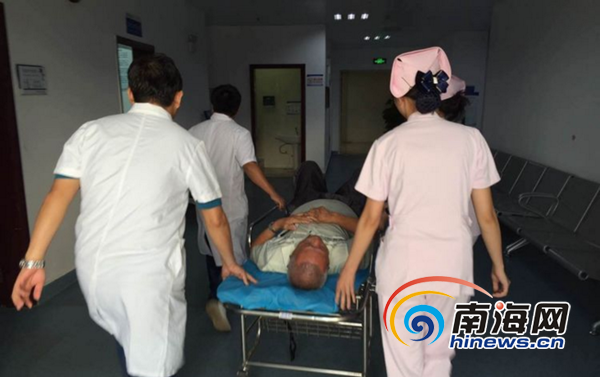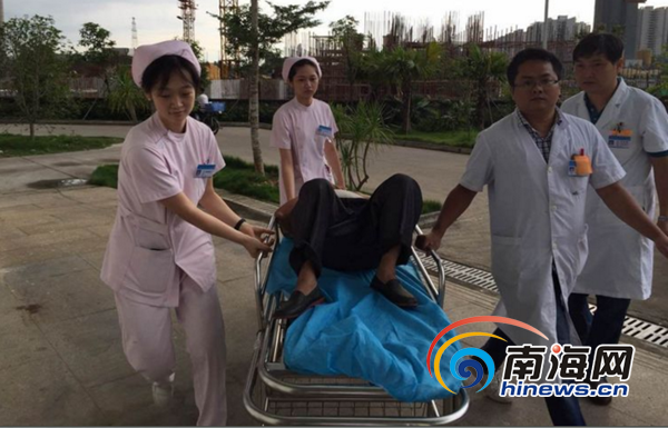 老人被送至?谑械谒娜嗣襻t院搶救。南海網記者馬偉元 攝