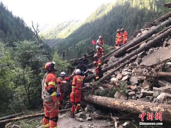 8月9日下午16時(shí)左右,德陽消防14名黨員突擊隊(duì)員徒步行軍10余公里,歷時(shí)3小時(shí)到達(dá)洛日朗附近一帶搜索被困群眾,期間余震不斷,大小石頭不斷的從山上滾下來,救援官兵把生死拋開,寸步難行的在山間搜尋。 圖片來源:四川消防供圖