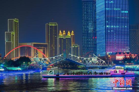 8月17日晚,第十三屆全運(yùn)會(huì)即將開幕,“點(diǎn)亮海河”活動(dòng)在天津海河兩畔的進(jìn)行了彩排、預(yù)演。 中新社記者 佟郁 攝
