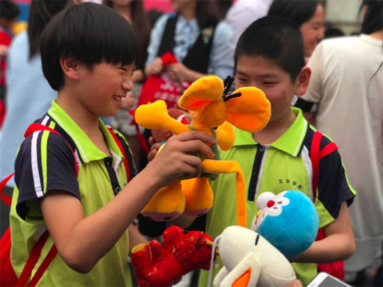 8月31日上午,在北京市海淀區西北旺的打工子弟小學文華學校,500名孩子收到了開學禮物——“小愛也溫暖”玩具禮包。他們迫不及待地打開禮包,害羞的表情掩飾不住內心的喜悅,吹起了口琴,跳起了跳繩……