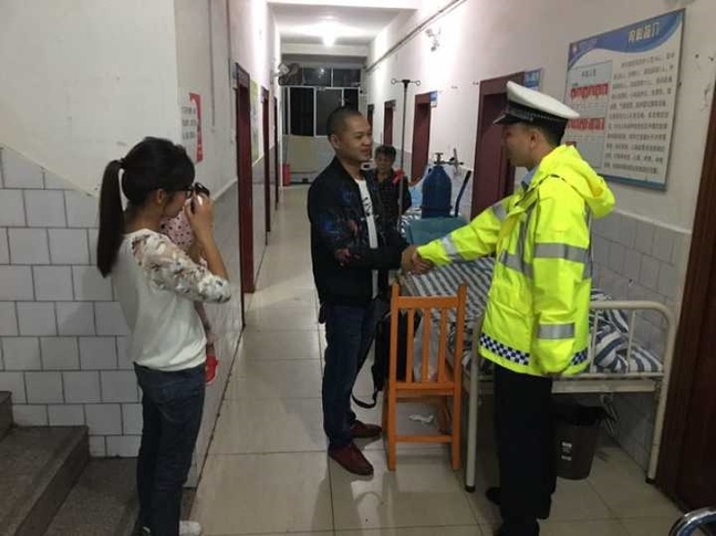 此時,民警鄭鴻耀,張永銳當機立斷,立刻開著警車護送他們。通過應急車道很快出了收費站,沒想到在文宮鎮上也遇上堵車,警車一路警燈警笛開道,甚至逆行了一段路,終于在18時57分到達文宮中心衛生院。帶著孩子進了急診室,兩位民警才放心了。孩子的父親羅先生感動不已,握住民警的手連聲感謝。(圖和視頻由交警提供)(記者 付真卿)