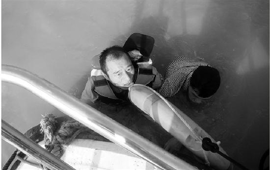 “我們把快艇的不銹鋼舷梯放下來,兩名協(xié)輔警在快艇上抓住落水男子的手,我在水中把他往上托,終于把他拉到了快艇上。”金衛(wèi)良說,當(dāng)快艇載著落水男子來到岸邊的碼頭時(shí),已經(jīng)3點(diǎn)10分左右了。