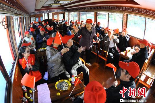 老人們一起游覽里運河風光帶。 桂寶林 攝