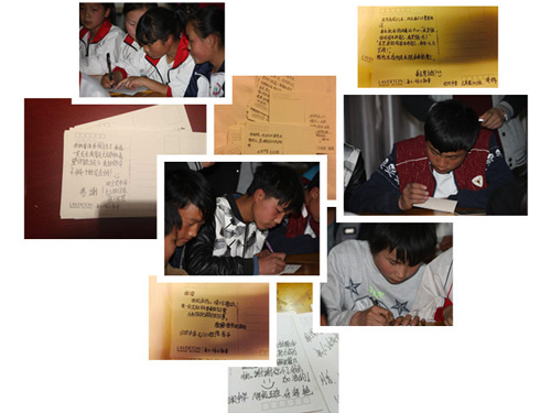 工作人員現場把寫有這些寄語的明信片分發給了同學們。同學們高興地捧著這些明信片,仔細閱讀,并在很快就在空白明信片上寫下了自己的感受。他們的文筆俊秀、情感真摯,字字句句都讓人十分感動。