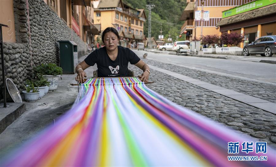 4月13日,云南省貢山縣獨(dú)龍江鄉(xiāng)村民和秋麗在家門口編織獨(dú)龍?zhí)海在街邊開了一家燒烤店。