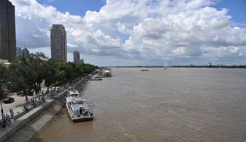 8月19日,松花江哈爾濱段突破了警戒水位達到118.13米,目前水位還在繼續(xù)上漲。江面比平時寬闊了很多,來往行駛的船舶明顯減少。中新社發(fā) 胡迪 攝