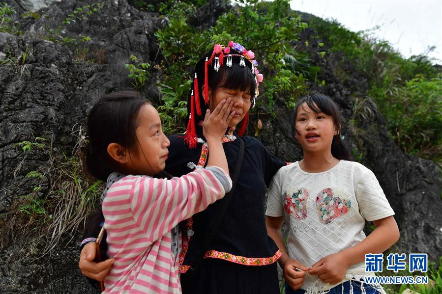 在廣西大化瑤族自治縣板升鄉弄冠村開展公益活動后,唐翠玉被孩子們送別的歌聲感動落淚(4月25日攝)。