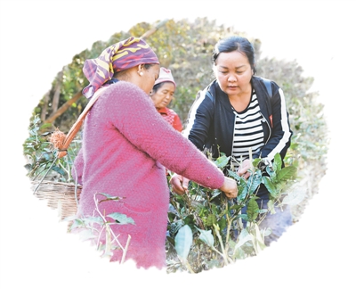 羅阿英(右)與村民一起采茶。新華社記者 王安浩維攝