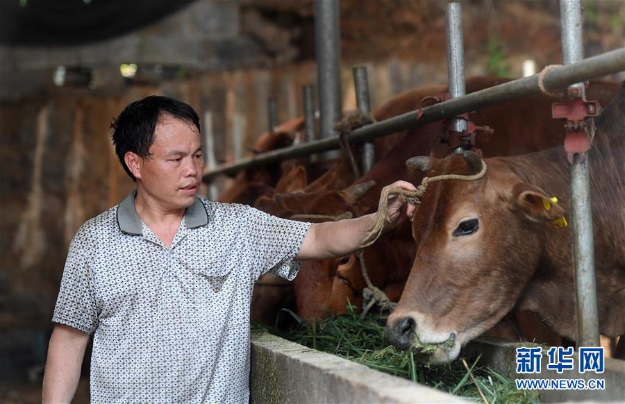 4月24日,在廣西都安瑤族自治縣隆福鄉(xiāng)隆旺村三叉屯,羅仕林在查看牛的生長情況。