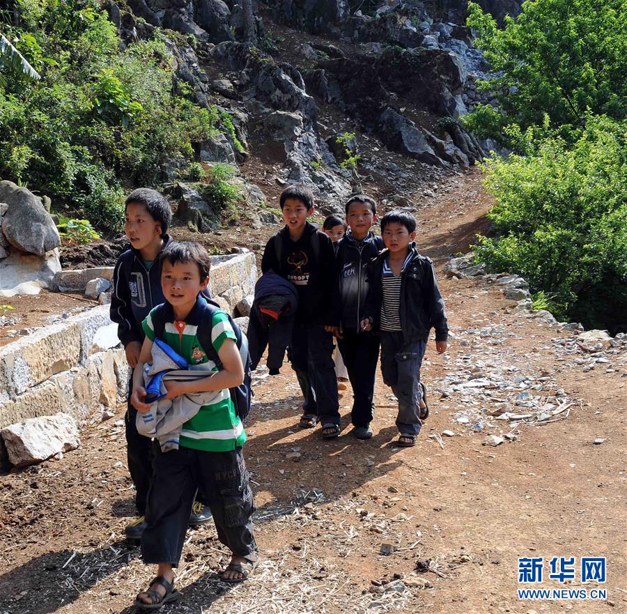 云南西疇縣雞街鄉肖家塘村的孩子行走在上學路上(2012年4月23日攝)。 新華社記者 楊宗友 攝