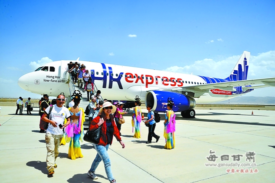 央廣網(wǎng)蘭州6月30日消息 6月29日,由香港快運(yùn)航空公司執(zhí)飛的香港—敦煌直通旅游航班A320客機(jī)降落敦煌機(jī)場(chǎng),標(biāo)志著香港至敦煌往返旅游航班正式開通。