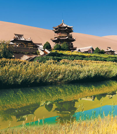 圖為9月19日拍攝的敦煌鳴沙山月牙泉景區(qū)。新華社照片