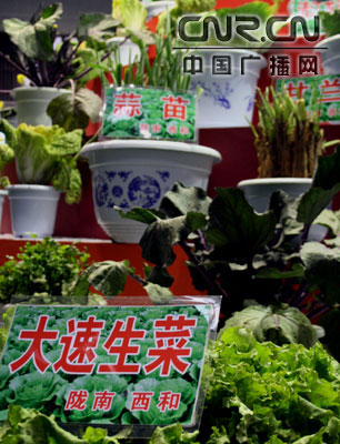 中廣網(wǎng)蘭州1月21日消息(記者 張磊) 連日的降雪讓整個(gè)蘭州籠罩在灰白的冷色調(diào)里,但是隨著第二屆隴南市冬季露地蔬菜博覽會(huì)的開(kāi)幕,那鮮嫩的綠色頓時(shí)讓蘭州市民眼前一亮。