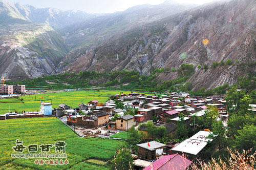 中廣網(wǎng)蘭州4月30日消息 綠樹、良田、新居,舟曲縣峰迭鄉(xiāng)壩子村美麗安詳。經(jīng)過災(zāi)后重建,壩子村面貌煥然一新。記者 洪文泉 攝