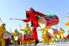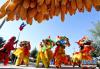 9月21日,村民在活動中舞獅。 當日,甘肅省張掖市甘州區首屆農民豐收節在明永鎮燎煙村舉行,村民們載歌載舞,參加各種趣味比賽,歡慶豐收。新華社發(王將 攝) -