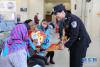 1月21日,蘭州鐵路公安局武威公安處民警為小朋友送上文具用品。新華網發(陳輝 攝) -