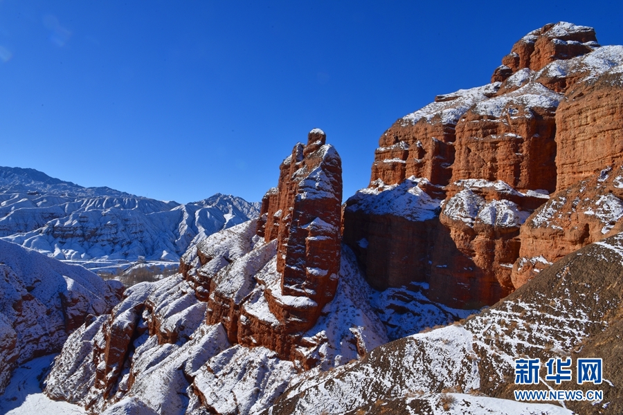 近日,甘肅省肅南縣迎來(lái)降雪,雪后丹霞在陽(yáng)光的照射下,分外妖嬈,宛如畫(huà)中景。該縣境內(nèi)有七彩丹霞、冰溝丹霞、外星谷丹霞、萬(wàn)佛峽丹霞、懸堂寺丹霞等地貌群,且擁有大量罕見(jiàn)的彩色丘陵和壯美的丹霞地貌。新華網(wǎng)發(fā)(武雪峰 攝) -