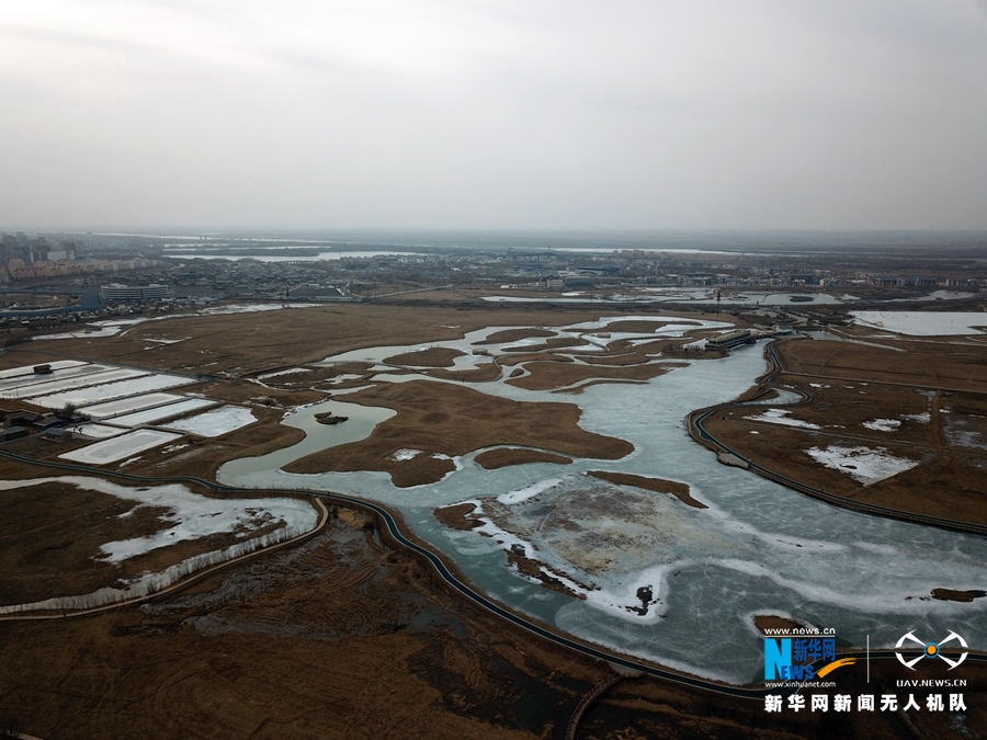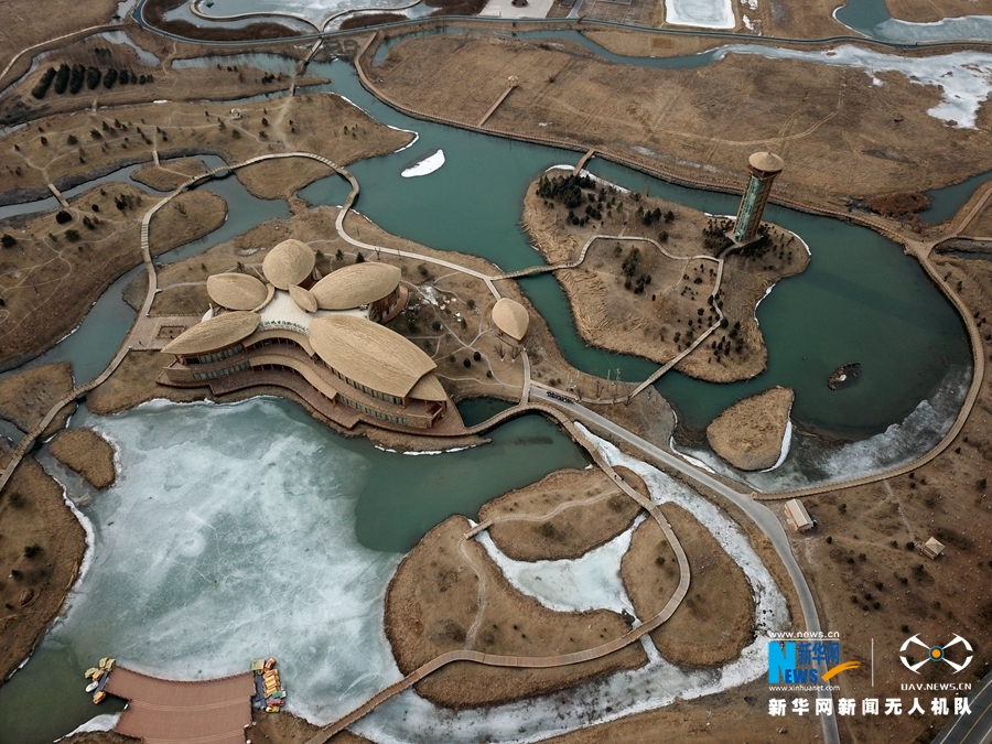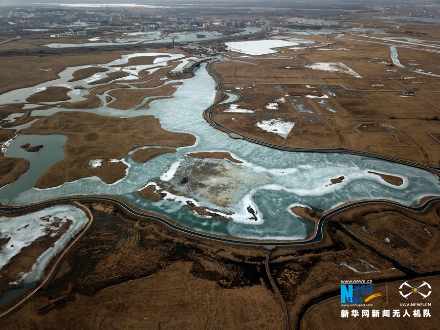 這是航拍鏡頭中的甘肅張掖國家濕地公園初春景色。立春以來,天氣回暖,位于河西走廊的甘肅張掖國家濕地公園里,沉寂了一個冬天的冰雪逐漸消融,星羅棋布的湖泊再現(xiàn)碧波,洋溢著大地萌蘇的盎然生機。新華網(wǎng)發(fā) (成學(xué)磊 攝)