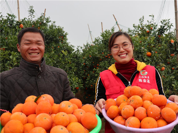 陳金蓮在果園摘收柑橘(央廣網(wǎng)發(fā) 江梨莉攝)