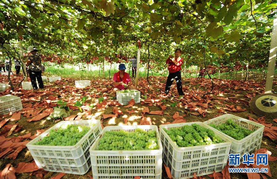 7月30日,果農在貴州省玉屏侗族自治縣新店生態葡萄現代農業園區采摘水晶葡萄。7月以來,貴州省銅仁市玉屏侗族自治縣種植的水晶葡萄迎來收獲季,果農們忙著采摘和搬運葡萄供應市場。近年來,玉屏縣大力發展高山生態水果,實現黃桃、葡萄、獼猴桃、無花果等特色水果的規模化種植,成為山區農民脫貧增收的重要產業。 新華社發(楊文斌攝) -