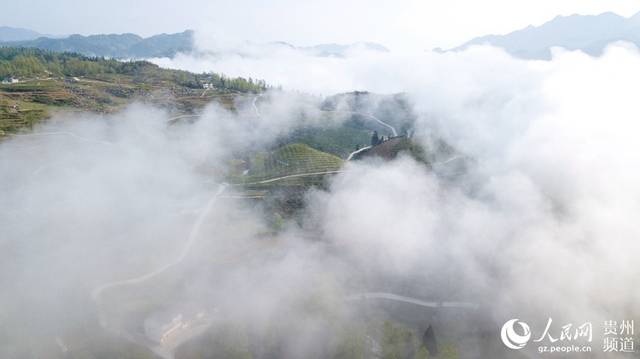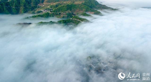 航拍貴州山村:霧繞仡鄉(xiāng)美如畫(huà)(高清組圖),4月17日,從空中俯瞰貴州省務(wù)川仡佬族苗族自治縣紅絲鄉(xiāng)先進(jìn)村,晨曦透過(guò)云霧,光輝灑滿村莊與青山,形成一幅夢(mèng)幻山村圖,宛若仙境。(田東)