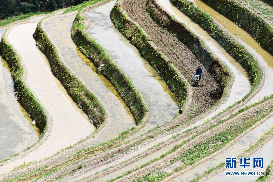 春耕時節,貴州省黔東南苗族侗族自治州從江縣農民搶抓農時犁田耕地。近年來,適合山區梯田耕作的微耕機逐漸取代耕牛,成為黔東南山區農民春耕的“新寵”。