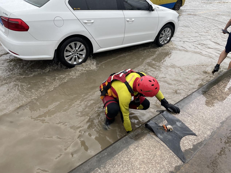 強降雨產生的垃圾雜物將思南縣一橋排水口堵塞,導致積水過多,嚴重影響交通。消防指戰員快速搜尋排水口,清理堵塞垃圾,經過45分鐘的救援,所有排水口疏通完畢,成功排除橋面積水;在思南烏江大道,由于積水嚴重,消防指戰員到場后打開下水道井蓋,利用城市排水系統進行排水,同時利用架設手抬機動泵,進行城市排澇。目前,排澇工作仍在進行中。