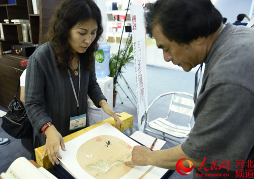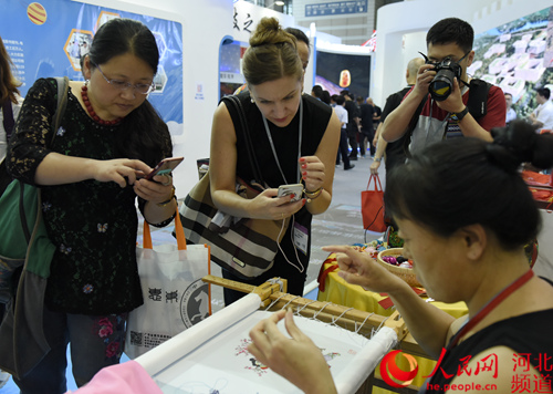 工作人員向游客介紹河北特色文化產品。王雅潔 攝