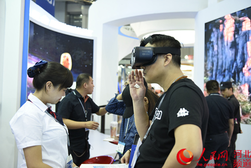 游客在河北展館體驗高科技產品。王雅潔 攝