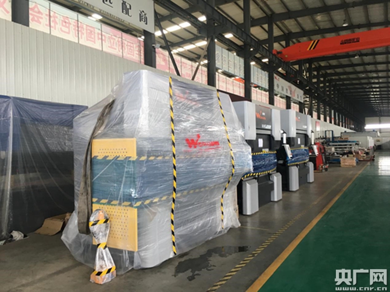 沃夫曼數控科技有限公司車間內已打包好的數控折彎機(左)。央廣見習記者張曉琳攝