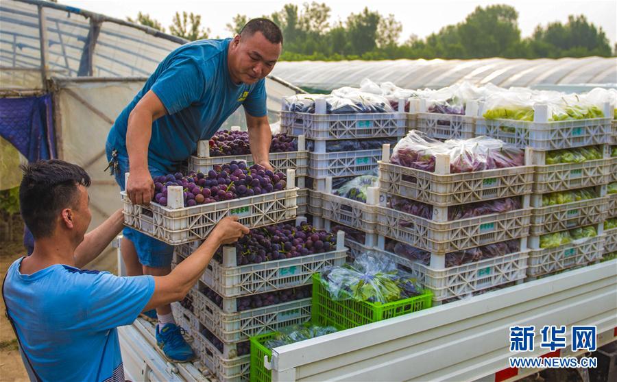 7月2日,河北省棗強縣唐林鎮邵府村村民將剛采摘的葡萄搬運到水果商的收購車上。近年來,河北省棗強縣在實施產業扶貧過程中,積極引導農民調整農業產業結構,因地制宜發展大棚葡萄種植,開辟出了一條脫貧創收新路徑。目前,該縣大棚葡萄種植面積已達5000余畝,收獲的葡萄暢銷京津冀市場,3000余貧困群眾借此脫貧。新華社記者李曉果攝